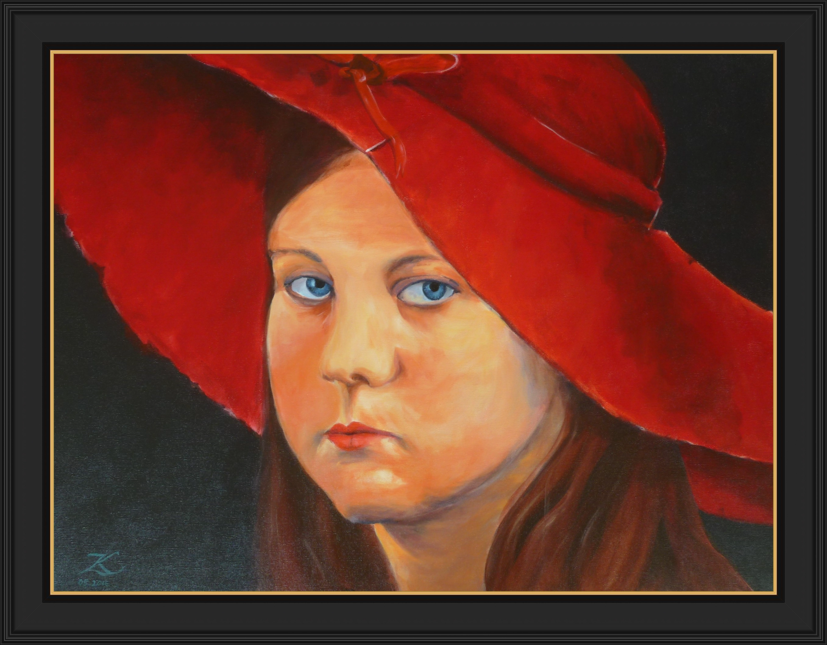 A girl in red hat